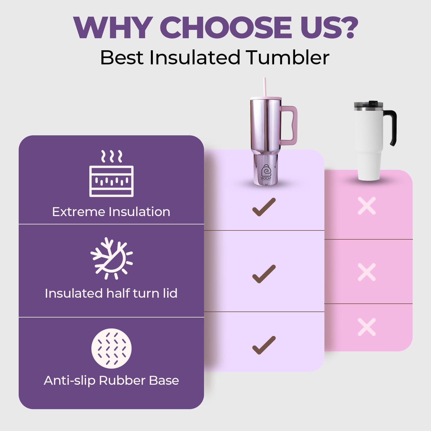 • Ergonomic Design: The 40 oz tumbler with lid and straw features an ergonomic, comfortable grip handle. The wide and thick handle provides relaxation by reducing pressure on your knuckles.