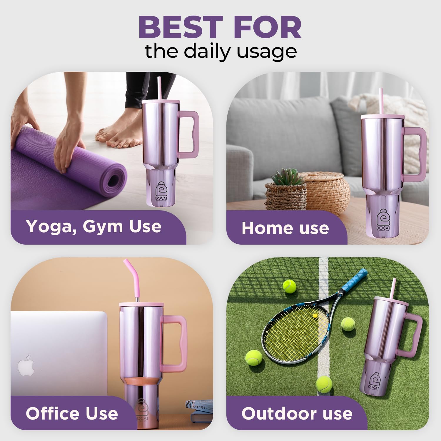 • Premium Stainless Steel: Docat tumbler with handle is made of high-quality 304 stainless steel and is BPA-free. Taking sustainability into consideration, the sipper bottle comes with a matching lid and straw that can be reused, making it safer and more environmentally friendly.